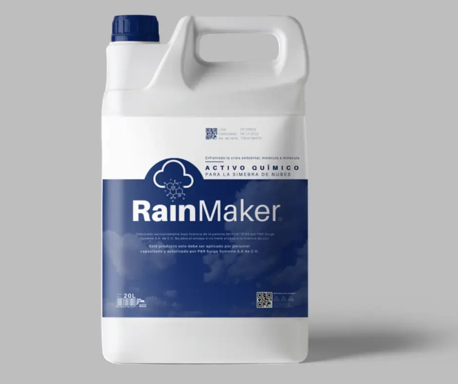 RainMaker® es una solución mexicana de estimulación de lluvias que atomiza millones de microgotas de un agente nucleante patentado, directamente dentro de las nubes, sin necesidad de sublimarlas. Gracias a su tecnología de aspersión en frío, funciona en rangos de temperatura donde los métodos tradicionales no sirven (-2 °C a 5 °C), lo que permite intervenir más tipos de nubes ampliando el rango operativo de la tecnología. Tras más de 200 vuelos exitosos, ha demostrado aumentar el tamaño y la vida útil de las gotas dentro de la nube, mejorando la eficiencia de precipitación y llevando agua a zonas agrícolas y cuencas sobreexigidas sin generar impactos ambientales negativos.